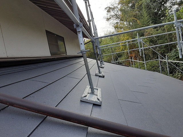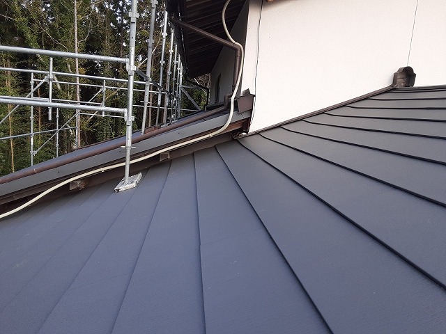 スーパーガルテクトの美しい仕上がりが、少しずつ屋根全体に広がっていく様子は、私たち職人もやりがいを感じる瞬間です。