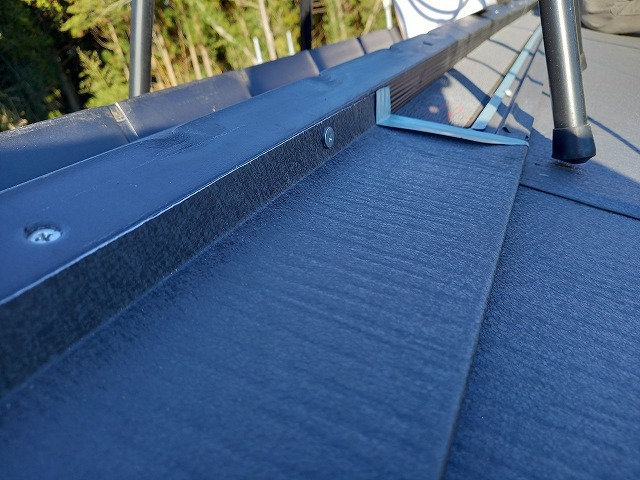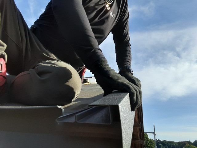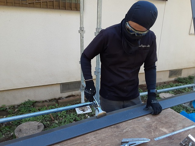 経験豊富な職人が、寸分の狂いもなく丁寧にケラバ水切り板金と軒先水切り板金を取り付けていきました。これで、屋根の外周部分は雨水に対する強固なバリアで守られることになります。