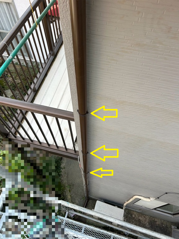縦樋は、外壁に取り付けた縦樋バンドで固定し、雨樋に流れた雨水が地上まで排出されるように設置しました!