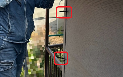 矢印は瓦桟(瓦屋根の内部)に金具を差し込み、金具をビスで固定しています。