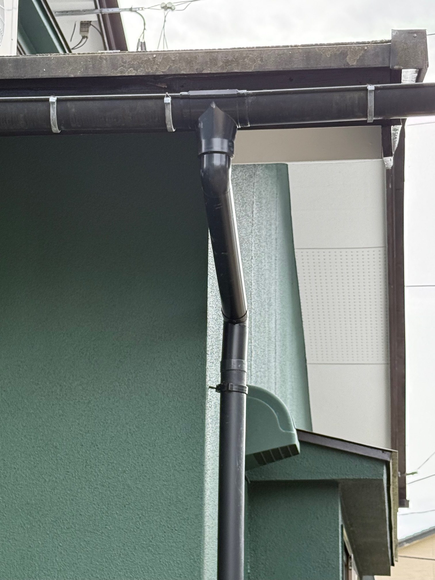 軒樋が逆勾配になり、雨水が流れず溜まっている箇所も修理しました。