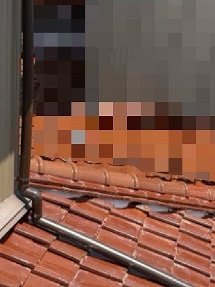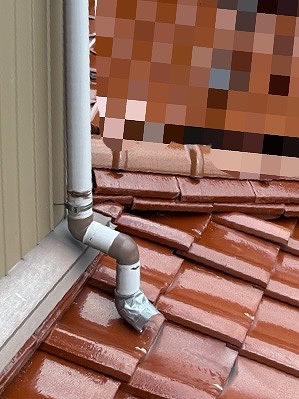 雨どいの繋ぎ目も傷んでおり、テープで養生されていました。