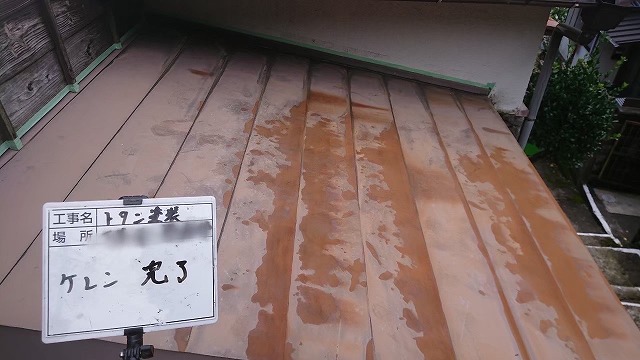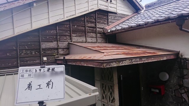 玄関のトタン屋根が全体的にサビが出てきている状態でした!!