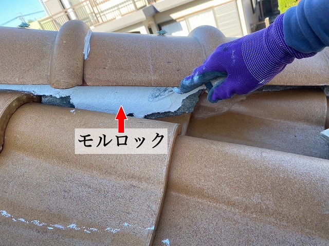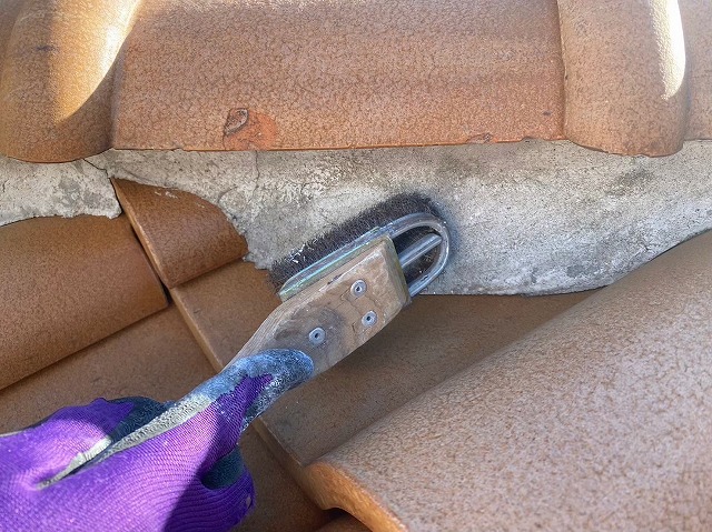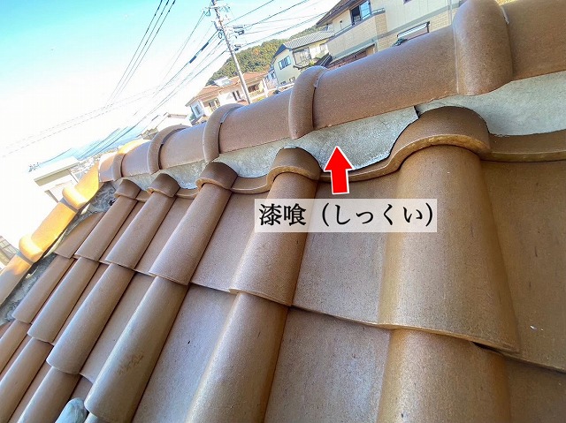 諫早市 【足場不要】瓦屋根にて初漆喰塗りで内部への雨水の侵入を防ぎます!