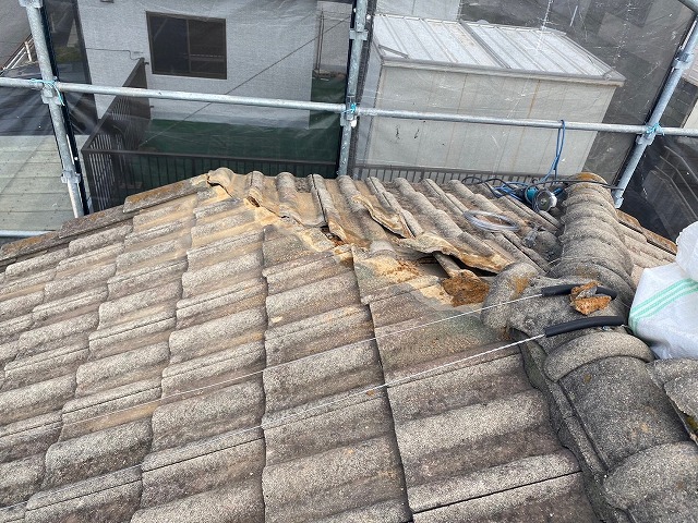 棟積み直し工事は、既存瓦を外して土台の土モルタルを撤去しますよ!