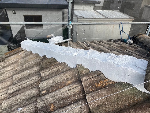 棟と呼ばれる瓦と瓦の隙間から雨水が内部へ侵入しないように、土やモルタルを使用して作られている部分の施工になりますよ!