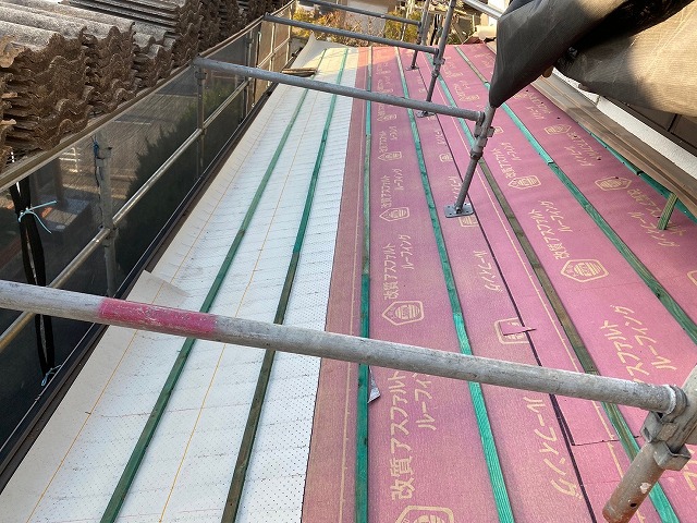 今回は、耐久性の高い 改質アスファルトルーフィング を使用しました!