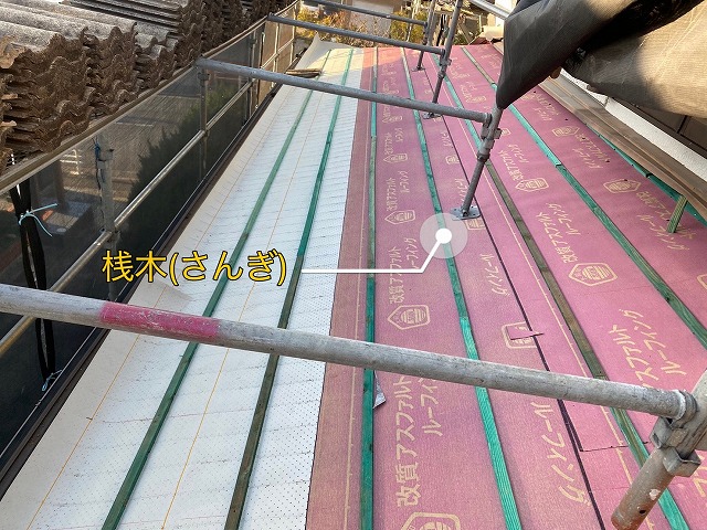 この桟木が、瓦を引っ掛けて固定する役割を持っていますよ!