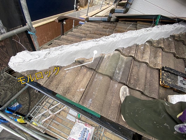 既存の棟は土を土台として使用していましたが、今回は、南蛮漆喰(モルロック)で土台を作っていきます!