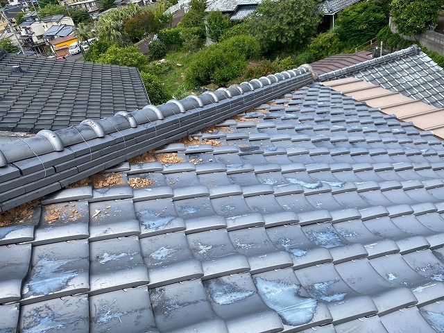 ホーム > 佐世保市で築40年の瓦屋根に漆喰の詰め替え工事を行いました&…
