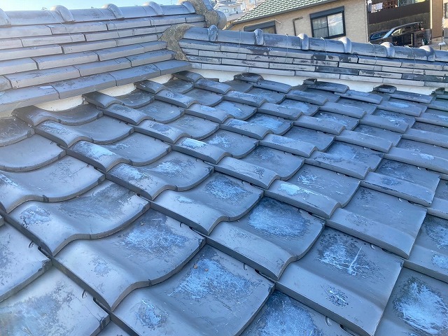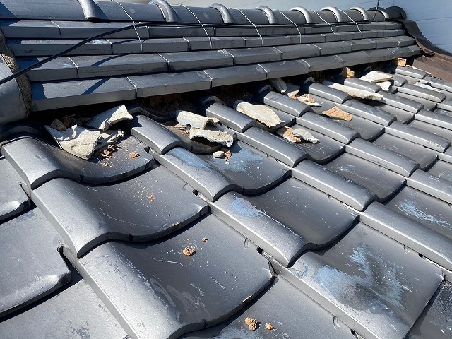 写真のように、瓦の隙間から土が見えている状態は、漆喰のメンテナンス時期のサインです⚠️