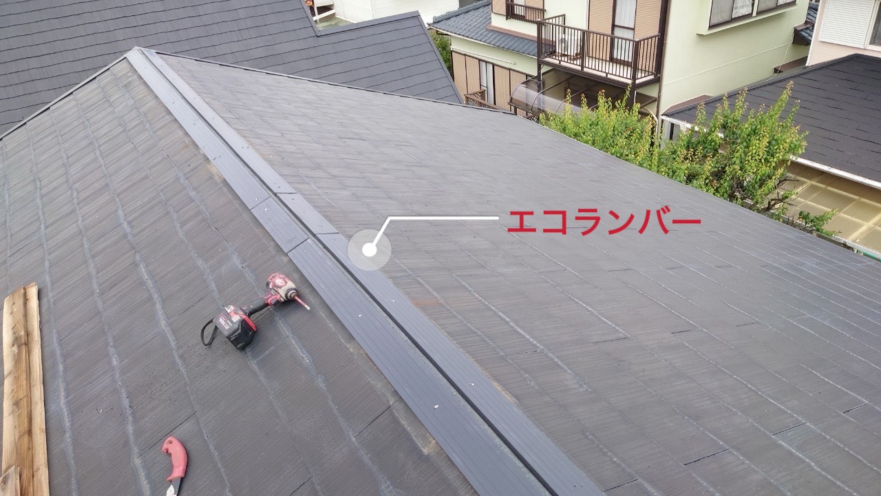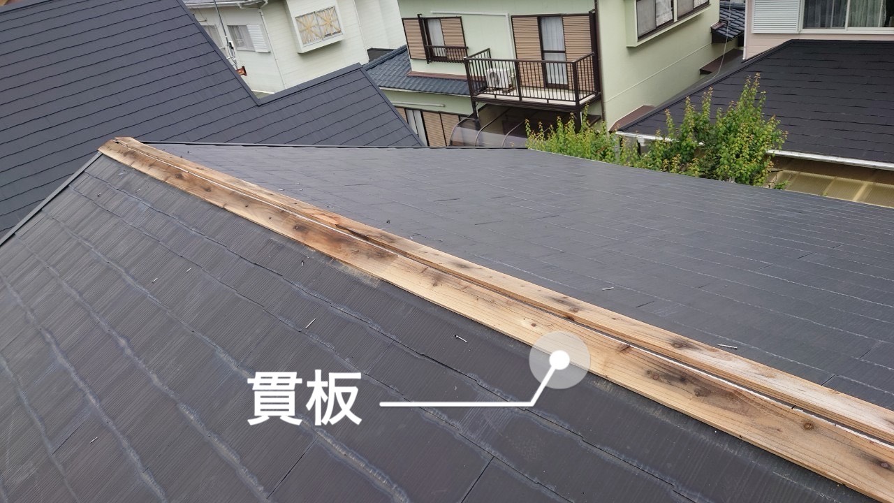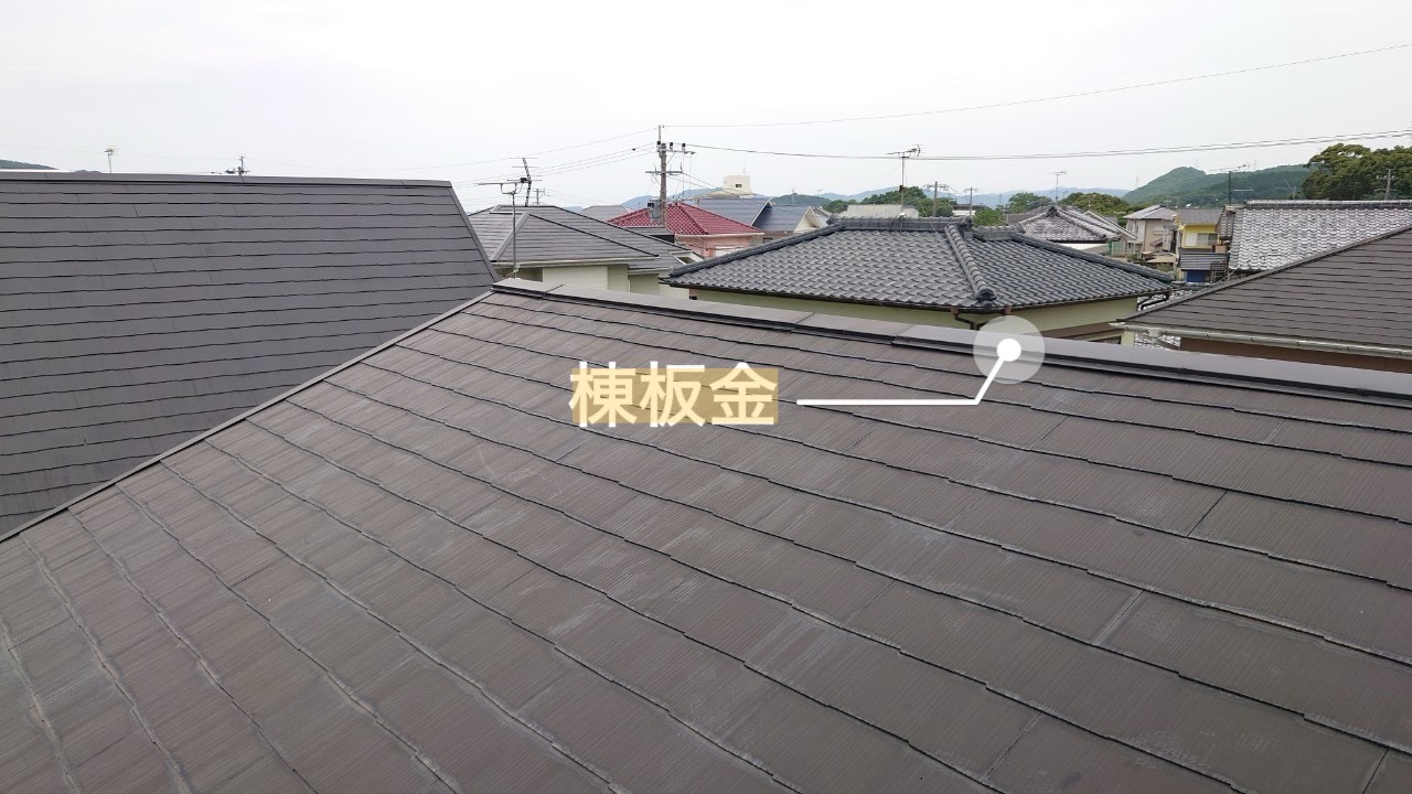 コロニアル屋根は軽くて耐震性も良い反面、棟(屋根の頂上)は“板金+下地(貫板)”で固定されています。