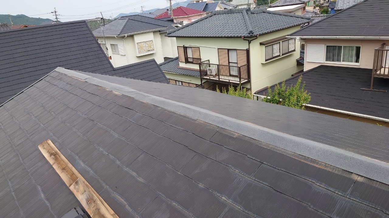 長崎市コロニアル屋根 棟下地変形をエコランバーへ交換 ガルバ板金施工事例