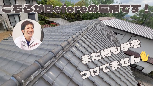 工事前の屋根は一見問題なさそうに見えますが、棟部分にはズレやコーキングの劣化が…。