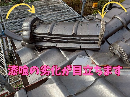 調査の結果、瓦のズレ、漆喰の剥がれ、そして土の露出が発覚。