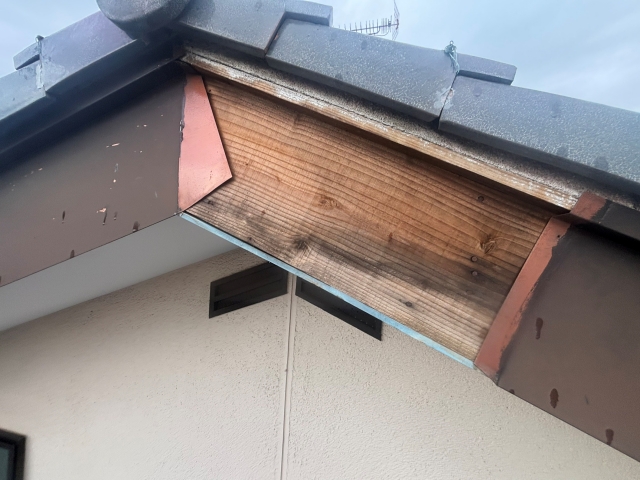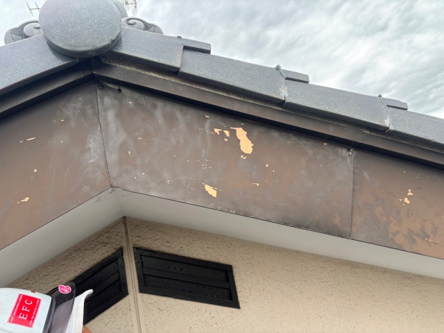 今回のような破風板板金の飛散は、強風や台風のあとに多く見られる症状です。