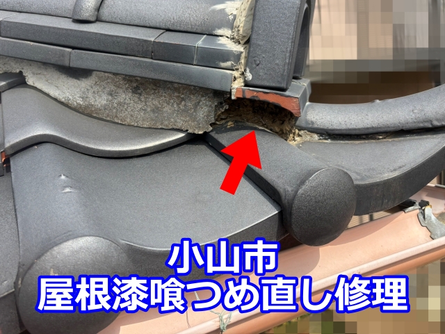ホーム > 小山市 下屋根の棟漆喰を入れ替え!鬼巻き、棟尻、葺き止め漆喰…