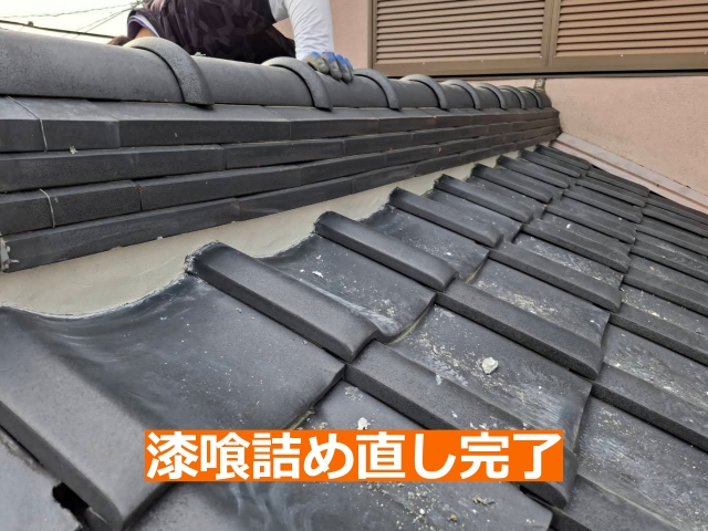 お客様が「葺き止め部分の汚れも気になる」とお話しされていたため、今回は葺き止め漆喰1.5m分はサービスで交換工事をさせていただきました(o^^o)♪