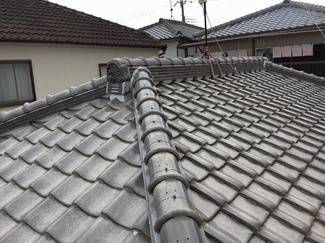 ホーム > 明石市 築36年の瓦屋根 雨漏り修理と棟積み直し工事 紐丸瓦…