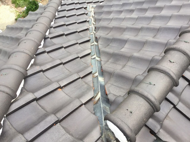 姫路市 銅製谷板金の穴あきを耐久性金属板へ交換し 2 日で雨漏り解消!!