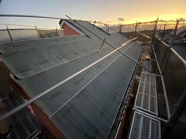 ルーフィングの設置は見えない部分ではありますが、屋根工事における非常に重要な工程であり、私たちは特に丁寧な施工を心がけています。