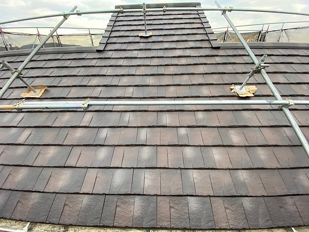 軽量で高耐久なルーガ鉄平を使った施工により、安心・安全で見た目も美しい屋根に仕上がりました。