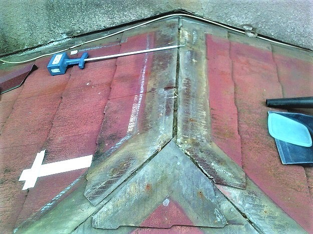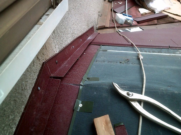 長年の風雨の影響で、防水性能が著しく低下していました。雨漏り箇所にご自身で防水テープを貼って応急処置。