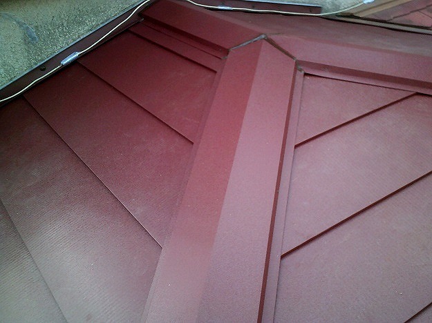 使用した材料は福泉工業㈱のシルキーG2で、既存屋根と色味を合わせたワインレッドを使用!