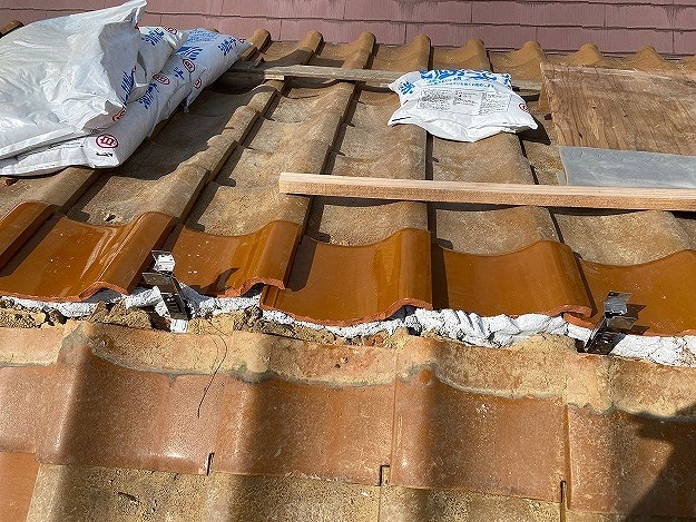 積み替えに併せて、棟下瓦の半面は入れ替えを実施し、土台にはモルロックを採用。