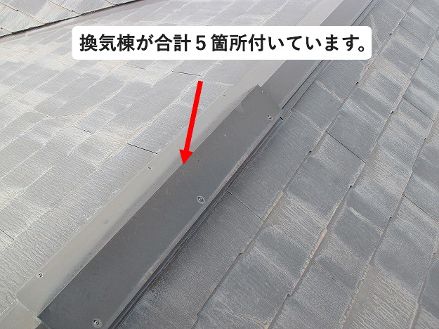屋根材以外を確認していくと、本棟箇所には屋根裏の空気を排出する【換気棟】が合計5箇所取付けされていました。