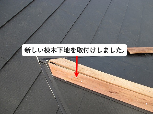 棟の形状に加工し、新しく被せる棟包み板金の幅に合わせて取り付けることが重要です!