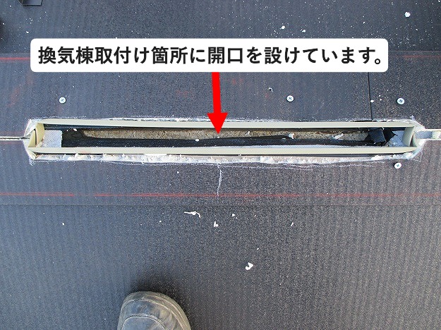 換気棟は、屋根裏の熱気を排出する役割を担っているため、新しい屋根材を施工後、換気棟の取り付け位置に換気するための開口を設けます。