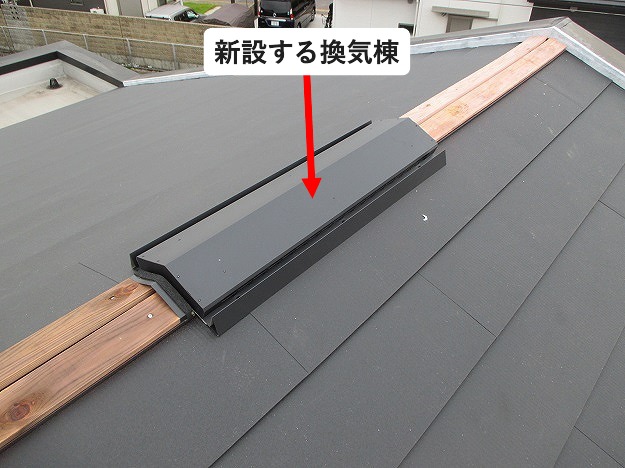 もともとの棟部には、屋根裏を換気する換気棟が5箇所付いていたため、今回も同じ数を新しく取付けていきます。