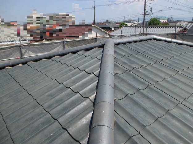 姫路市 屋根修理・落下したスポンジは危険信号!棟瓦取り直し工事!