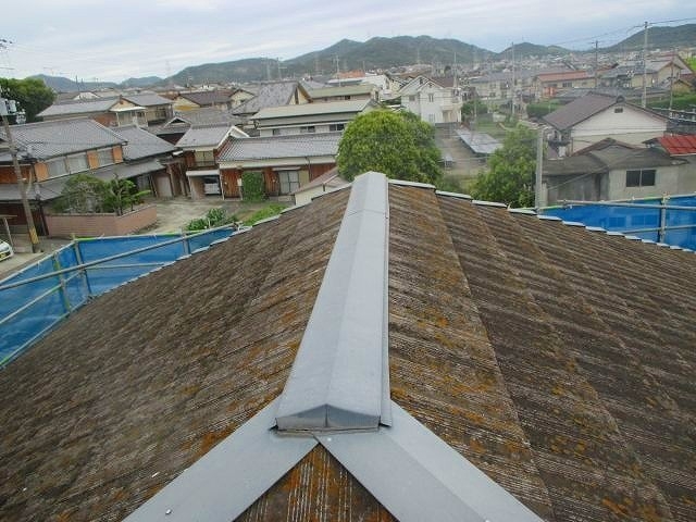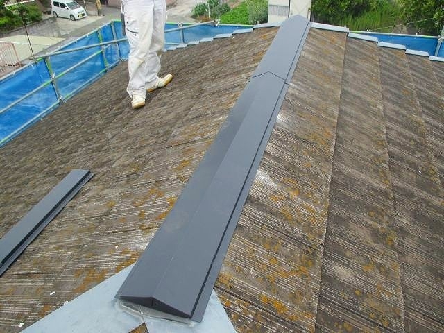 ホーム > 三木市 塗装前にと屋根補修工事!棟板金の交換と割れたセメント…