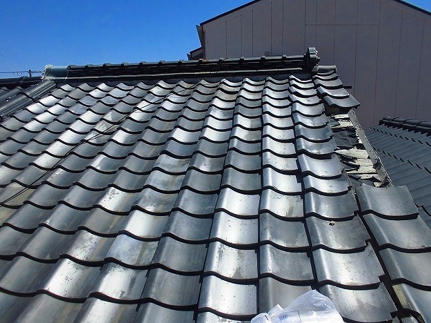 部分的に色合いの違う瓦が混ざっており、既存瓦が何らかの影響で損傷したことなどが想定されました。