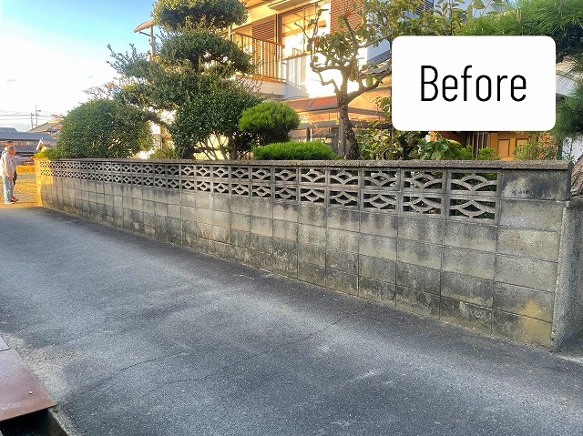 こちらが今回アルミフェンスへ改修を行うコンクリートブロック製の塀です。