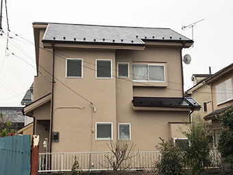 屋根材はコロニアル(化粧スレート)、外壁材は、モルタルです。