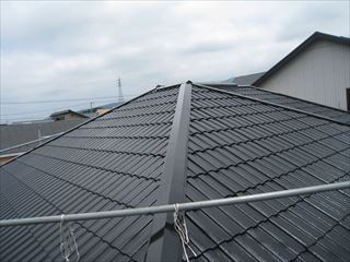 瓦用強化シーラーを施工して、シリコン仕上げです。塗装する事により、綺麗になるだけでなく、雨・風・熱から守られます。