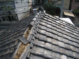 葺いてある状態の瓦がずれたり浮いたりしています。
