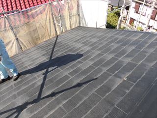 既存のカラーベスト(スレート屋根材)とその下に敷かれているアスファルトルーフィング(防水シート)をすべて撤去。