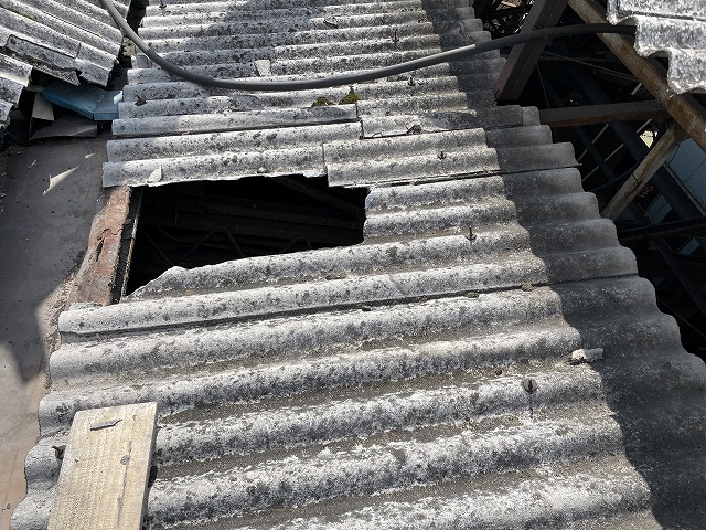 福山市で工場のスレート屋根に穴が!FRPでカバー工法、安心の自社施工で即対応