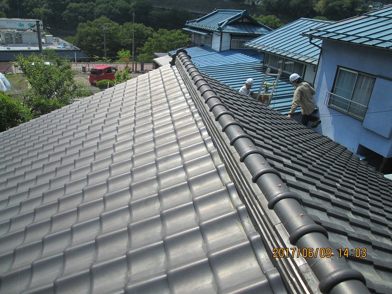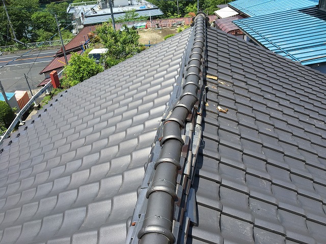 こちらは横から見た工事が終わった後の棟瓦です。