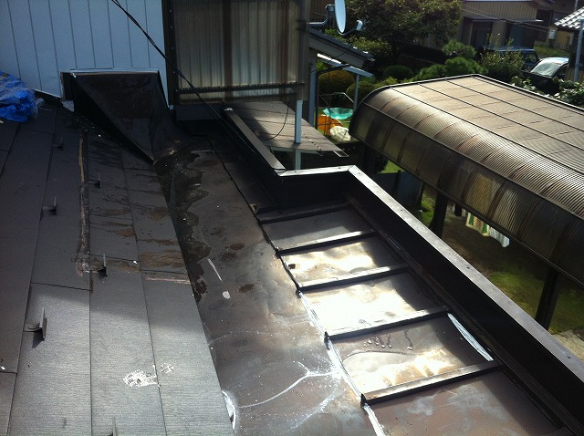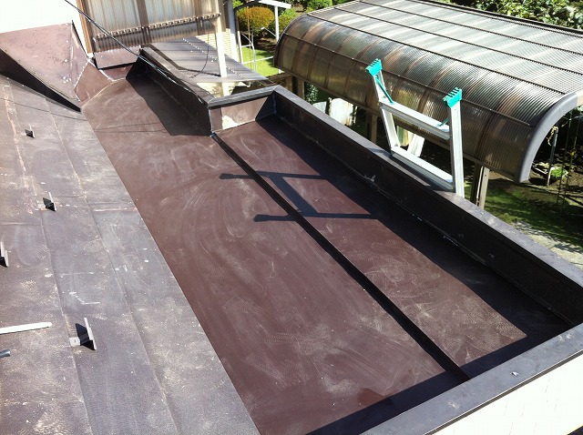 ルーフィングシートの上に板金を現場の寸法に合わせて施工されました。