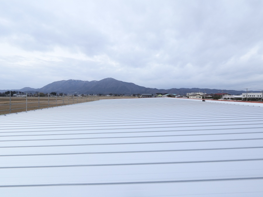 【新潟市西蒲区】強風で折れ曲がった工場の屋根をガルバリウム鋼板でカバー工事した事例