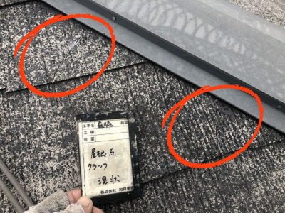 クラックの隙間から雨が進入した場合は防水紙、野地板などに雨がまわり木部が腐食して最悪、葺き替え工事になりかなり金額が高い工事になりますので早期発見が大事です