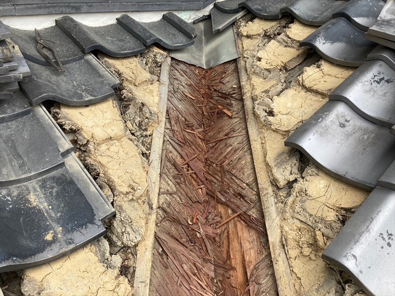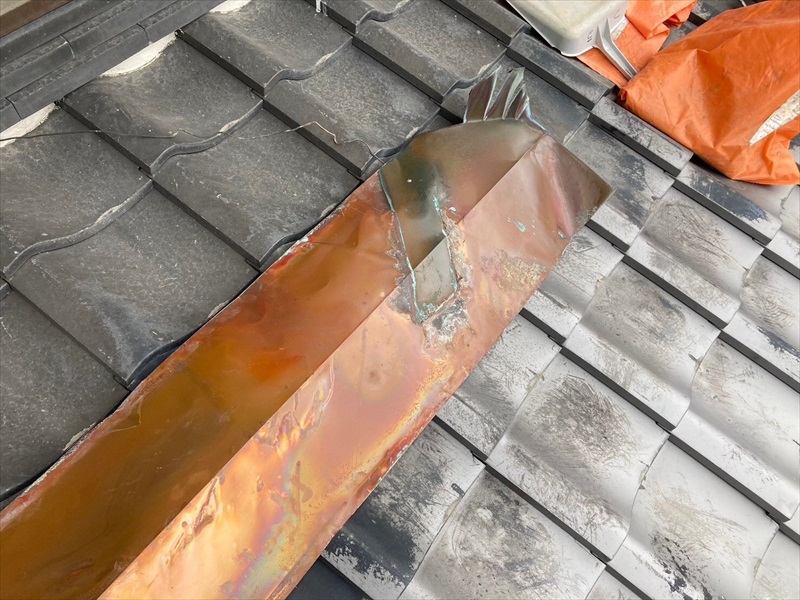 大和郡山市にて谷板金の交換工事、銅板が劣化し雨漏り施工事例