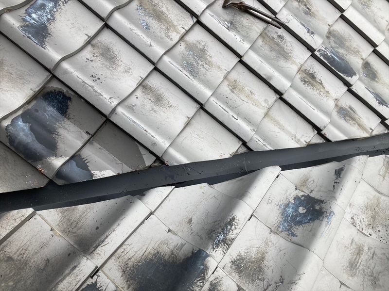 浮き上がった隙間から雨水が進入してしまう恐れがあります. 谷板金の素材が銅板ですので、昔の家に多く使われていましたが酸性雨と瓦と化学反応をおこし穴が開いたり