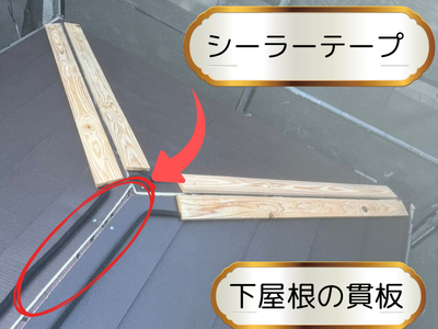 ガルテクトの設置いたしました! 貫板を設置して固定していきます!!下屋根の貫板固定はシーラーテープで固定します!