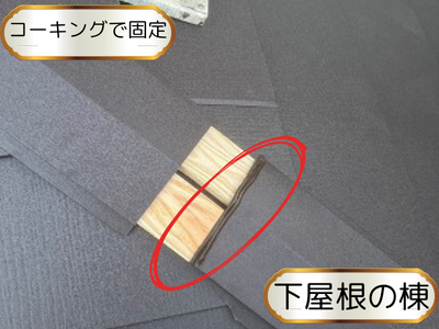 貫板のを最後は板金をカバーしていきます!貫板を隙間なくきっちり被せますがコーキング(防水)で止めます!接着し雨水が入らないかを確認します!